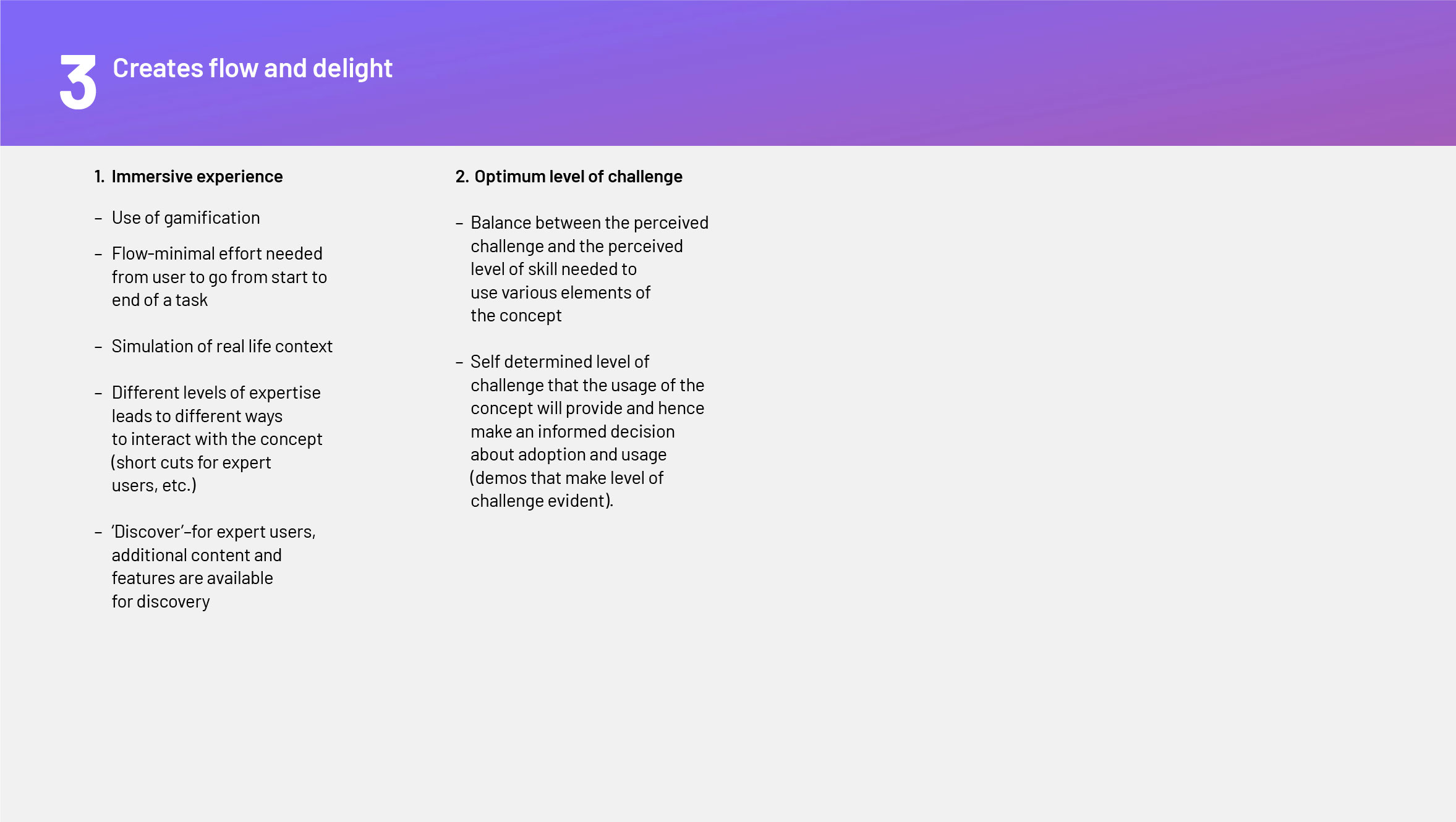 - Provides a sense of flow and delight